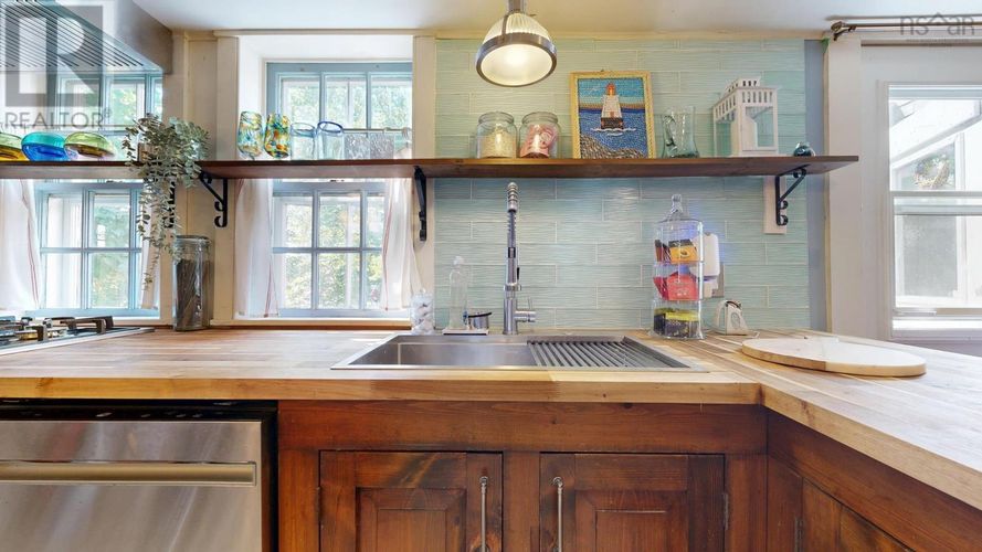 Shakespeare House - A Charming Salt Box Home with Guest House, Water Views & Storybook Setting. Nestled on a beautifully landscaped corner lot next to a serene park, this historic home and darling guest house by the sea offer the perfect blend of timeless character and modern upgrades. The main home and income-producing guest house offer picturesque water views of the worlds third deepest natural harbour within easy walking distance of the Yacht Club, Osprey Art Centre, popular restaurants, shops, and attractions. The 1436 sq ft main house has been completely restored (1984) and renovated (2021-25), and retains many original features. It features 3 heat pump heads, a spacious renovated kitchen, a cozy breakfast dining nook with an impressive hand-hewn granite fireplace, a convenient powder room, a formal dining room, and a welcoming living room with custom built-ins showcasing the other side of the granite fireplace. Either of the main floors 2 principal rooms could easily be converted into a 3rd bedroom. Upstairs, youll find two generously sized bedrooms, a recently renovated bathroom (2025) with a classic clawfoot tub, and abundant storage throughout (including a separate storage room). The primary bedroom features a granite fireplace and sitting area, adding to the cozy ambiance. The basement with laundry (new propane dryer, 2024) offers additional storage space. The 430 sq ft, four season guest house with bathroom, kitchen, balcony, heat pump, separate power meter, and generator panel was custom-designed and built in 2024. Operating as a successful 5-star Airbnb business, the guest house is perfect for visitors, extended family, or rental income to help pay down your mortgage. The U-shaped driveway, garden shed, fence, and patio add to the appeal. There have been many thoughtful upgrades over the years that respect the homes heritage. Enjoy daily walks along the picturesque historic waterfront. A virtual tour, video, and more information is available (id:26452)