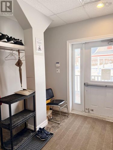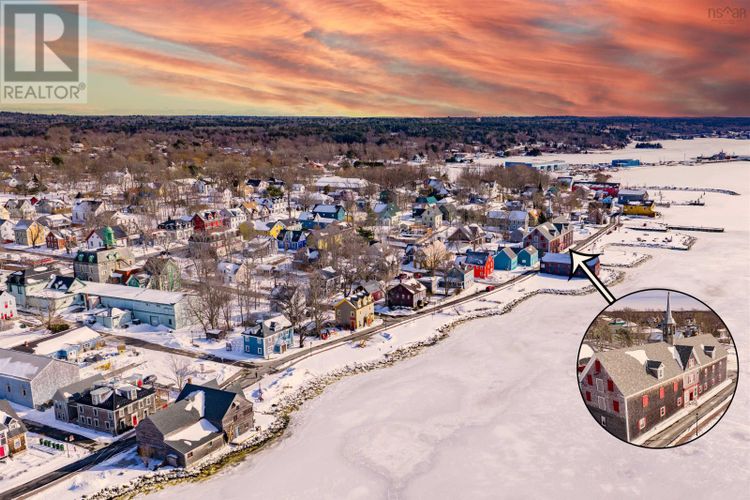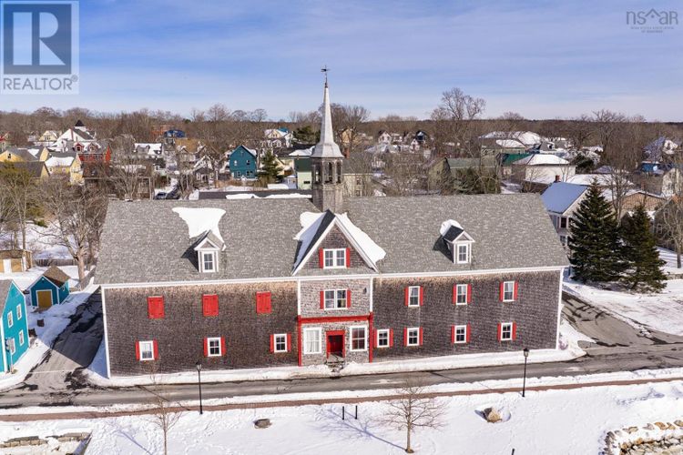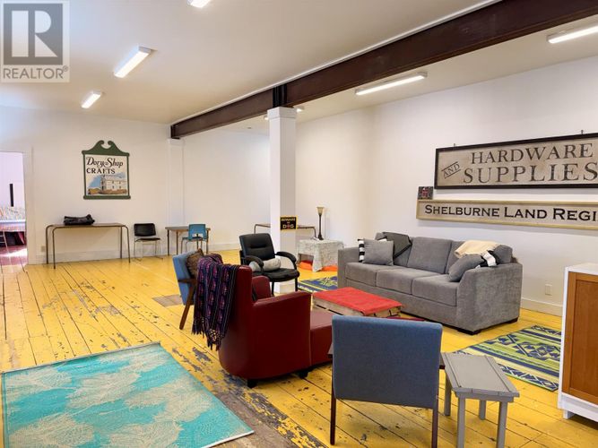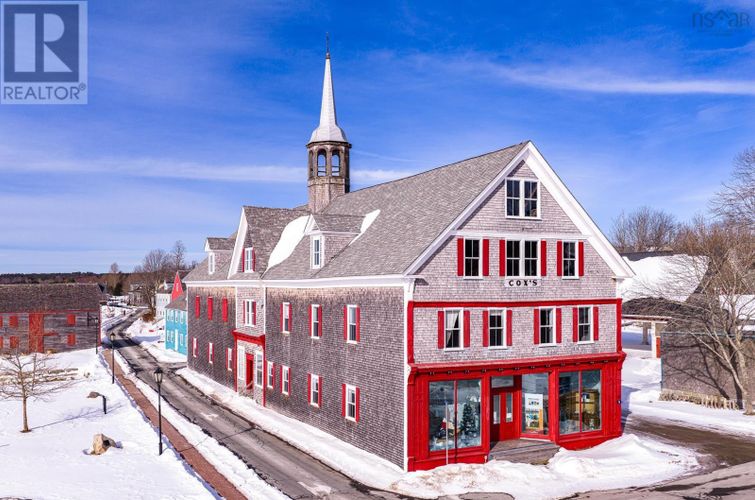 An iconic landmark on the waterfront of Shelburnes historic district, this large Greek Revival building is set directly on Dock St., facing south and spanning the length of the block from Ann Street to Maiden Lane. Known locally as the Cox Warehouse, it was built for merchant and shipbuilder George A. Cox in 1902 and acquired by the Shelburne Historical Society in 1986. The building, which is a municipally registered heritage property, is 160 ft / 49 m long, has three storeys and sits on a granite block foundation. The structures exterior still boasts many of its original architectural features, including return eaves with ornamental brackets, corner boards, decorative moulded panels flanking the south entry and doric columns supporting the front entablature. Many of the original oak beams and pine planks used in the interior construction of the building are still exposed and in pristine condition on the second and third floors of the building. The roof has three gabled dormers on the east side and two on the west side, with a large central dormer over an entrance on the west side. A steeple which was added to the roofline in 1994 for the film production of The Scarlet Letter is still in place and accessible from the third floor. The first floor of the building is leased by Shelburne Physiotherapy, a local business and long-term tenant. The second floor holds a seasonal loft apartment and artefact storage for the Shelburne County Museum. The third floor or attic of the building, which has an extensive steel cable bracing system, is undeveloped. (id:26452)