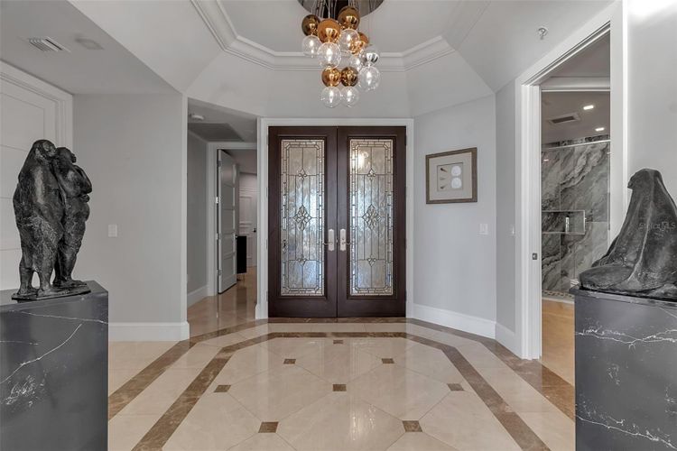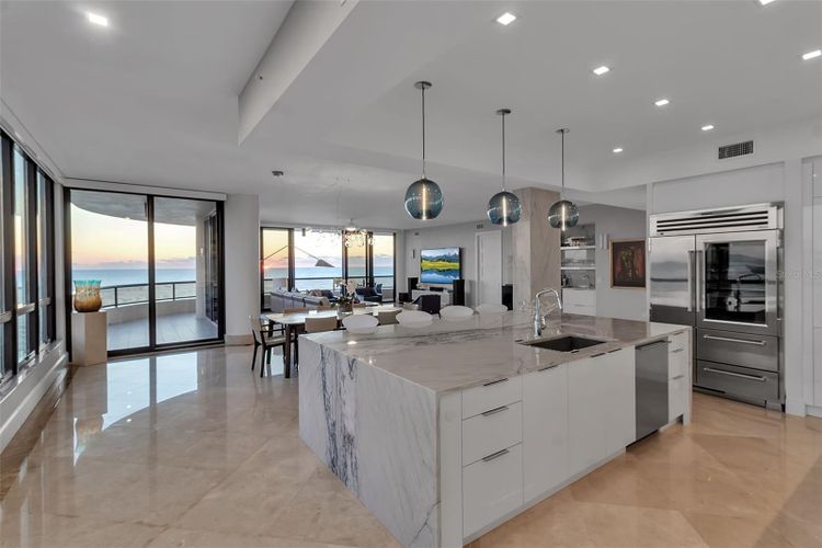Welcome to L’Ambiance, where every day is a holiday. — This residence is the gem of all jewels, a Crown of Coastal Elegance and the epitome of refined luxury living! Discover the true essence of a sophisticated coastal lifestyle at L’Ambiance, where every detail has been meticulously curated to offer unparalleled elegance, comfort, and breathtaking beauty. Nestled just moments from the prestigious Longboat Key Club, residents enjoy access to 45 holes of championship golf, world-class tennis, exquisite dining, a rejuvenating spa, and the second-largest marina on Florida’s west coast. This extraordinary residence is a masterpiece of architectural brilliance and contemporary design, thoughtfully and recently updated to perfection. Step inside this Southwest corner home and be captivated by sweeping panoramic vistas that stretch from the shimmering waters, with sunsets over the Gulf of Mexico, Sarasota Bay, and the vibrant downtown skyline, as well as sunrise and moonrise. These awe-inspiring views set the perfect backdrop for a lifestyle of effortless sophistication and tranquility. Your journey begins with a private elevator that opens directly into a stunning, updated home, featuring windows and sliding glass doors that meet the latest hurricane code. Enjoy a 3,380 sq. ft. sanctuary, where light floods through expansive floor-to-ceiling glass sliders, illuminating an open-concept living and dining area that seamlessly combines style with functionality. Designed for entertaining and everyday living alike, the sleek interiors feature a chef-inspired kitchen with a captivating waterfall-edge island—truly the heart of the home and a testament to culinary artistry. The residence boasts three generously sized bedrooms en-suite, thoughtfully positioned in a split layout to ensure maximum privacy and serenity. The primary suite is a private retreat flooded with natural light and features sliding glass doors that open onto a spacious terrace. Here, you can enjoy your morning coffee while soaking in stunning vistas of the Gulf of Mexico and Siesta Key in the distance. The en-suite primary bathroom is a spa-like sanctuary, offering an indulgent escape with views of the gulf and luxurious finishes and fixtures. We also have a versatile bonus room wing that offers additional space with queen-size bunk beds for children or a private retreat. L’Ambiance offers unrivaled amenities designed to elevate every aspect of luxury living. Residents enjoy a 24-hour manned gated community, concierge service, security, an on-site manager, a resort-style heated Olympic-size pool and spa, a state-of-the-art fitness center, outdoor BBQ areas, three social rooms, and three overflow guest suites available on a first-come, first-served basis. Included are 2 upper-level under-building parking spaces and storage. This pet-friendly community is dedicated to making every detail perfect, delivering a lifestyle that is as effortless as it is extraordinary.