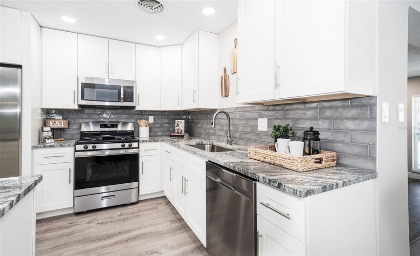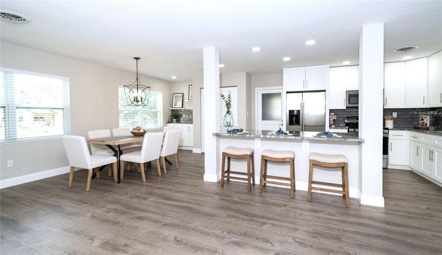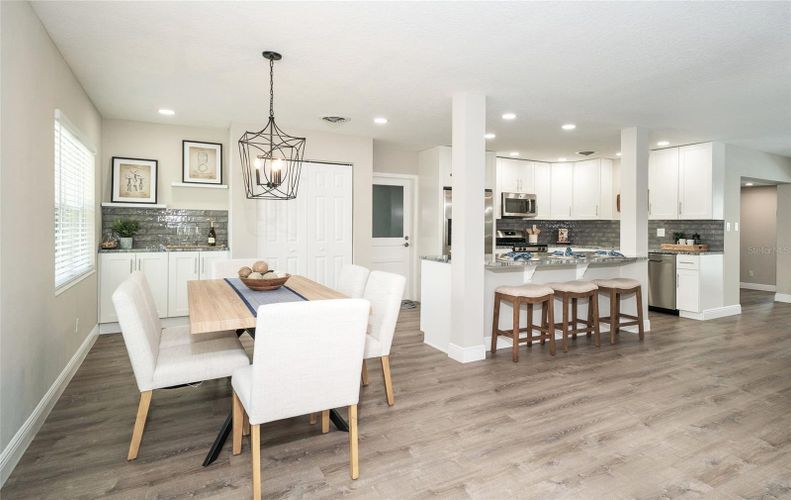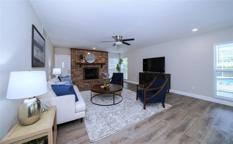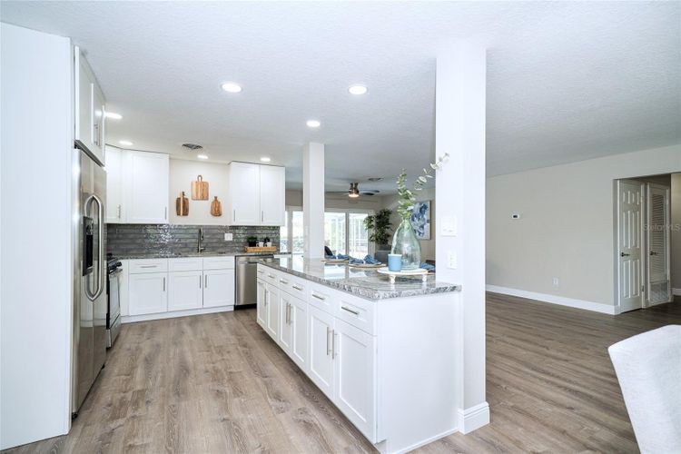 Welcome to an exquisitely renovated pool home in the tranquil and charming tree-lined streets of Temple Terrace, just a short walk along the beautiful golf course to the renowned Temple Terrace Golf and Country Club. With seamless indoor-outdoor living and entertainment in mind, this 3 bedroom, 2 bath home has recently undergone extensive remodeling and updating. The new kitchen is a chef’s dream, offering a gas range/oven, granite countertops, beverage bar, and abundant storage with 42" white shaker soft-close cabinets, double door pantry, and a huge island open to the great room. A second living area featuring a brick surround, wood burning fireplace offers unique flexibility with separate access from outside as well as to the screened pool area. Significant enhancements were made to the ensuite primary bath including a double sink vanity with quartz countertops, an enlarged step-in shower, and all new lighting/plumbing fixtures. Take great comfort knowing recent improvements have been made to include: Roof (2023); ALL NEW DOUBLE PANE windows, exterior door, and sliding glass door; NEW GAS Water Heater and ELECTRICAL PANEL; NEW recessed lighting and ceiling fans; ADDED ceiling insulation; NEW Garage door/opener; and NEW LUXURY VINYL PLANK flooring throughout. The entire south-facing (always sunny) 44'X25' pool area has been rescreened with all aluminum and decking painted, and the generous 32’X16’ pool has been resurfaced with a mood enhancing, multicolor LED light added. So now, relax and unwind while lounging in our sparkling pool or sitting on the covered patio with a good book or drink. With nearly 1/3 acre, there is plenty of room for gardening, storing your boat, or enjoying a workshop/shed. NO HOA or CDD fees! Prime location with convenient access to I-75, I-4, downtown Tampa, USF, Moffit Cancer Center, and several parks including Riverhills Park with BOAT ACCESS to the Hillsborough River. Only 1.1 miles to the Temple Terrace Family Recreation Complex with basketball/tennis/pickleball courts, fitness center, and planned activities. A home and neighborhood sure to please - Call today to experience!
