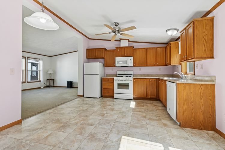 Welcome to the Four Seasons mobile park community! This wonderful retirement community offers beautiful landscaping, tree lined streets, a park, green areas, pool and community center plus numerous social events are offered! This 2013 Grandville Winchester features 3 bedrooms, 2 full baths and an attached 2.5 car garage that is insulated. Primary bedroom offers direct access to one of the full bathrooms, updated flooring (2023) and walk in closet. Popular split bedroom layout with bedrooms 2 and 3 located on the opposite side of the living room and share the second full bath. Roomy ~ fully applianced ~ kitchen with table eating area. Convenient laundry area located off the garage. This well maintained home features vaulted ceilings, crown moulding, ceiling fans, central A/C, newer HE furnace (aprox 2022) and newer microwave (2024). Conveniently located with easy access to I-90/39/20 and just minutes from dining, shopping, and medical facilities. Don't miss this opportunity to own a move-in-ready home! Park requires a 630 credit score and 3x monthly income for the fees. Credit/background checks required for everyone over 18.